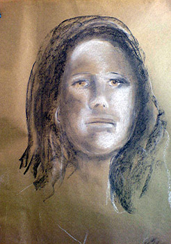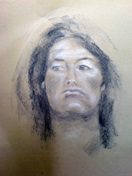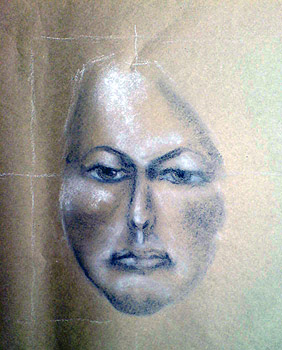 Students undertook extensive and closely supervised instruction in the Chiaroscuro method in portraiture. Students were given a series of simple exercises to become familiar with the method and mediums used. Below is a portrait study with examples of drawings by the students.
